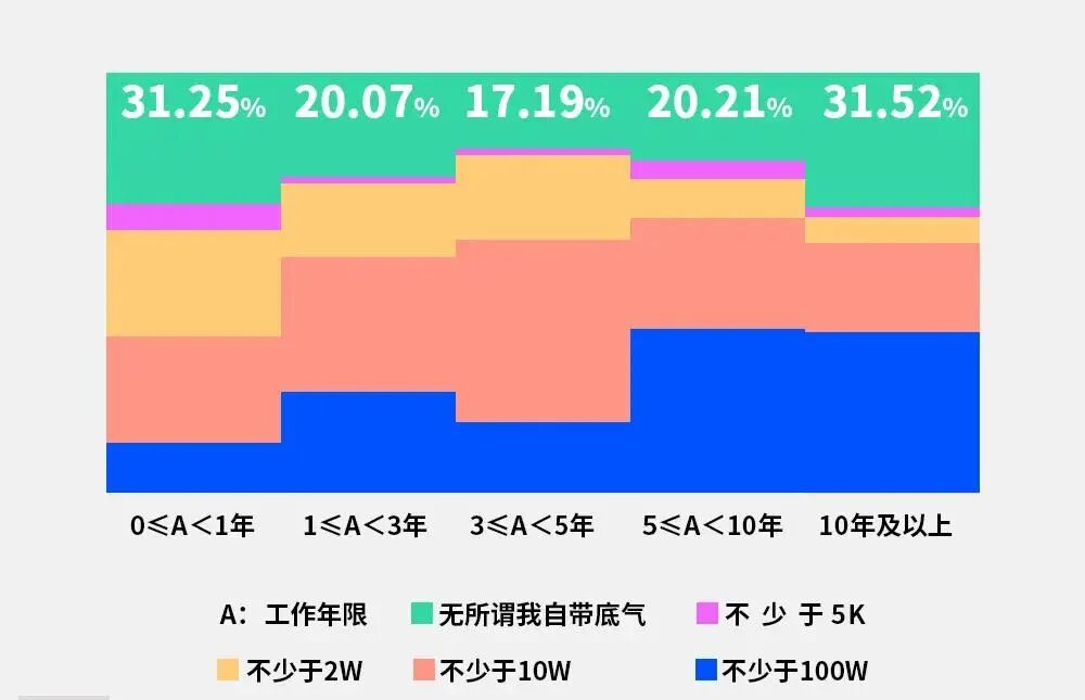 01 10位职场人中,8位想辞职 职场生存不易,社畜都是在夹缝中生存。 平均每10位职场人中就有8位想裸辞,从没想过裸辞的硬核职场人,只占22%;接近一半的人偶尔会有几次有裸辞的念头;16.24%的职场人几乎每天都会想辞职。 02 最想辞职的几大原因究竟是? 心里委屈,比钱不到位更想让人辞职。 调查研究显示,最让人想裸辞的三大原因是:不开心,工资低,没盼头。 即选择“工作氛围不佳”占比54%、钱不到位占比48%、看不到升职加薪的希望占比44%,这三项占据辞职原因的前三位。 看来,心情、薪情和希望,都很重要。(老板们,快来看看这一条) 03 每天都想裸辞的职场人都是什么行业? 占比16.24%每天都想裸辞的行业中,公关、HR、产品占据排行榜前三。 老师、医生、行政则是内心最安定的岗位。不管何时何地,老师和医生始终是大家心目中的香饽饽! 04 初入职场、职场老鸟裸辞自带底气 对于裸辞这件事上有组神奇的数据,初入职场不满一年的职场人和进入职场超过十年的职场老鸟似乎都自带底气,裸辞比例均超过30%。 05 钱是拦住职场人裸辞第一大原因! 钱虽然不是裸辞的第一大理由,但却是阻碍职场人裸辞的第一大原因。 超过半数的人没有裸辞是因为房贷车贷孩子教育等费用支出,其次是担心裸辞后新工作不好找。 06 存款10w+才有底气说走就走 任何事情上任性的底气都是来自于“钱”,职场也不例外。 超过6成职场人表示,兜里有10w以上,才敢说走就走,但仍有四分之一的职场人自带底气,对此无所谓。 07 90后资产能支撑职场空白期多久? 辞职成本主要是换工作中的过渡期,过渡期也能“手中有钱”,才能“心里不慌”! 辞职之后,90后的资产能支撑职场空白期多久?30%的90后资产只能支撑不到3个月,超过55%的90后资产可以支撑3个月以上,其中26%的90后资产可以支撑职场空白期长达一年。 08 超7成职场人曾把裸辞付诸行动 虽然房贷车贷等各种金钱压力时刻逼迫着职场人,但仍有超过7成的职场人曾把裸辞的想法付诸于行动,忍无可忍无需再忍。 09 2020年,裸辞更谨慎! 今年年初突发疫情,绝大部分公司效益也大打折扣,小企业倒闭,失业人数增多。 在不确定性激增的2020年,职场人对待裸辞这件事上的态度更为谨慎,60.88%的人会更加慎重考虑。 裸辞与否,当代职场人考虑的更多的是辞职成本和对自己带来的影响,兜里有钱,身上有专业技能,手上有人脉、资源和好机会的话,会非常有安全感,如果都没有,确实不太敢轻易辞职的,毕竟要养家糊口,有房贷车贷房租要交... 但是,归根到底裸辞并不能解决职场根本性的原因,大多数人想要裸辞的冲动也仅仅是工作不如意、不顺心,就想一走了之,以为辞职就可以解决一切。如果自己没有足够的能力扛住肩上应有的责任,一遇到问题就用辞职来逃避和麻痹自己,同样的场景,在可预见的未来,还会继续上演。 当下的社会,唯有努力提高自身价值和能力才能在职场立于不败之地。